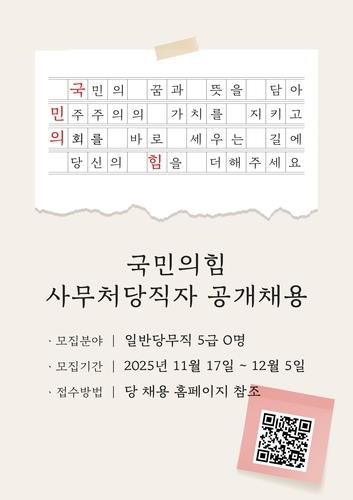 국민의힘, 신입 사무처 당직자 공개채용…12월 5일까지 접수
